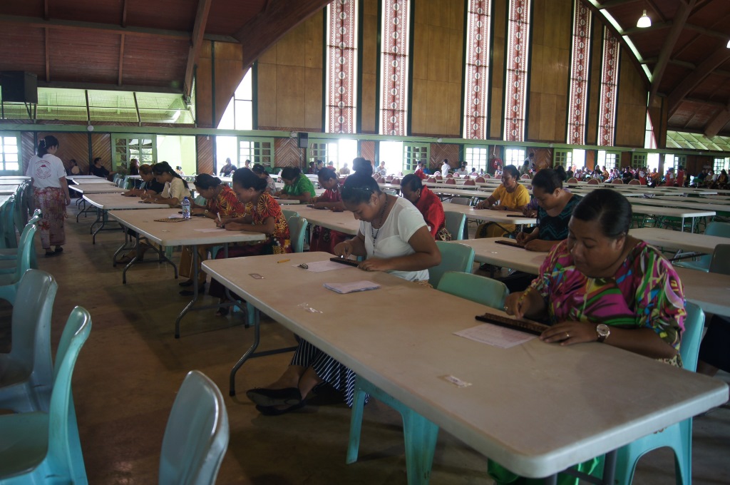 2015年3月12日(木)、第5回トンガ王国そろばん全国大会がクィーン・サロテ・メモリアル・ホールで開催されました。サミュエラ・アキリシ・ポヒヴァ首相兼教育訓練大臣が主賓として出席し、葉室和親駐トンガ日本国大使及び藤井将男国際珠算普及基金理事長(ISDF)が見守る中、小学4年生と5年生の児童が、それぞれ筆記、読み上げ算、暗算の部において、そろばんの技術を競い合いました。