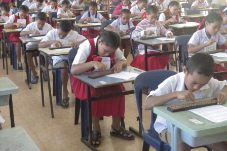 2015年7月24日金曜日、トンガ王国ババウ島マイレフィヒ・シウイリクタプ・カレッジのマアマモオニア・ホールにおいて、在トンガ日本大使館及びトンガ教育訓練省共催のもと、トンガそろばん大会(ババウ大会)が開催されました。ババウ大会には、19の小学校の3年生から5年生の生徒が約300名参加し、筆記、読み上げ算、暗算の3種目において、日頃の学習の成果を競い合いました。